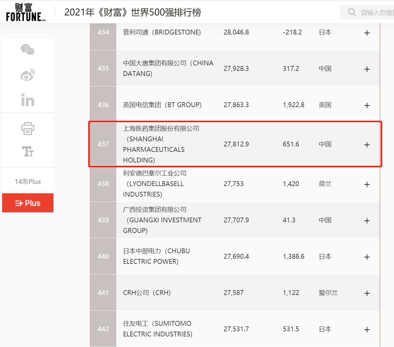 2021年8月2日,《財(cái)富》雜志正式發(fā)布“2021年《財(cái)富》世界500強(qiáng)排行榜單”,上海醫(yī)藥集團(tuán)股份有限公司(601607.SH,02607.HK,以下簡(jiǎn)稱(chēng)“上海醫(yī)藥”)再次上榜,位列第437位。這也是繼2020年首次入選后,上海醫(yī)藥再度憑借自身實(shí)力強(qiáng)勢(shì)登榜,排名躍升36位。